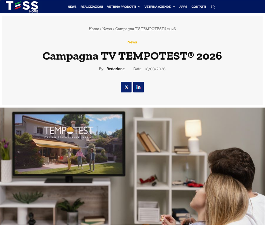 Sul sito web della testata tedesca RTS si parla della nostra partecipazione alla Fiera R+T di Stoccarda, del lancio della nostra Collezione CENTENARIO, del nostro impegno verso l'ambiente attraverso il nostro tessuto TEMPOTEST® STARLIGHT blue e dell'importantissima attività di formazione svolta in Germania con brand di eccellenza quali Wurth e Somfy e coordinata dal nostro Ambasciatore TEMPOTEST® Nikolaus Kratz.