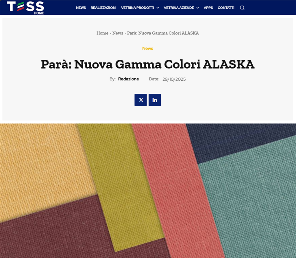 Sul sito web www.cosedicasa.com si parla di protezione solare. All'interno dello speciale dedicato al nostro settore si parla della nostra innovativa Collezione Tempotest® Starlight blue, la prima collezione al mondo di tessuti per la protezione solare in PET riciclato e certificata GRS