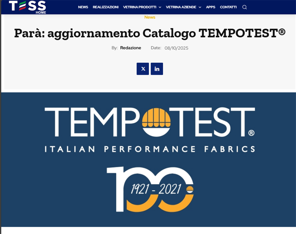 TESS ha dedicato un articolo al nostro TEMPOTEST® STARSCREEN. Un tessuto innovativo che, non essendo spalmato con PVC, mostra una gradevole mano tessile che unita alla sua stabilità dimensionale, lo rende sempre perfetto nel suo aspetto e particolarmente affine al mondo dell’arredamento e dell’architettura.