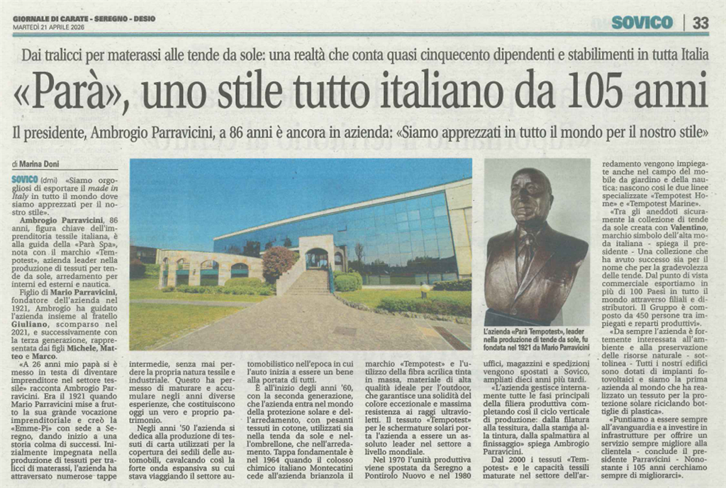 In occasione dei suoi 105 anni di storia, Parà, la Family Company brianzola che tramanda i propri valori da tre generazioni, ha appena portato a termine un importante ampliamento dell’impianto fotovoltaico presente nel suo stabilimento produttivo di Pontirolo Nuovo (BG). Un investimento di più di un milione di euro per un nuovo campo fotovoltaico di circa 10.000 mq per una potenza installata di quasi 1.500 kWp. Questo investimento si aggiunge al fotovoltaico già esistente arrivando a produrre più di 2 MWh!